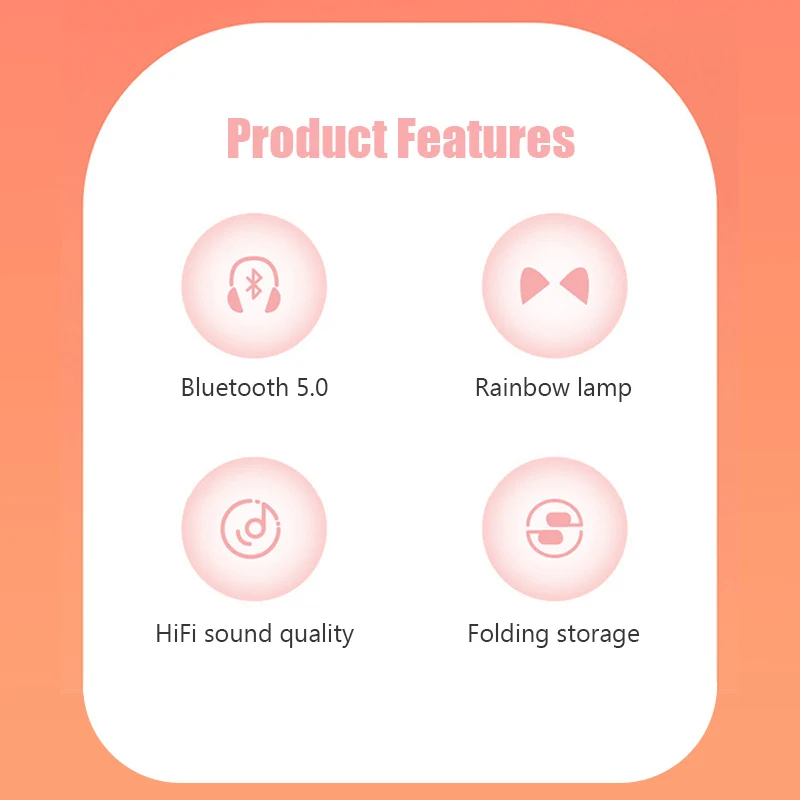 Casque audio sans fil confortable avec réduction de bruit active, idéal pour musique, jeux et appels. Léger, pliable, avec éclairage LED dynamique sur les oreillettes et micro intégré pour une utilisation quotidienne.