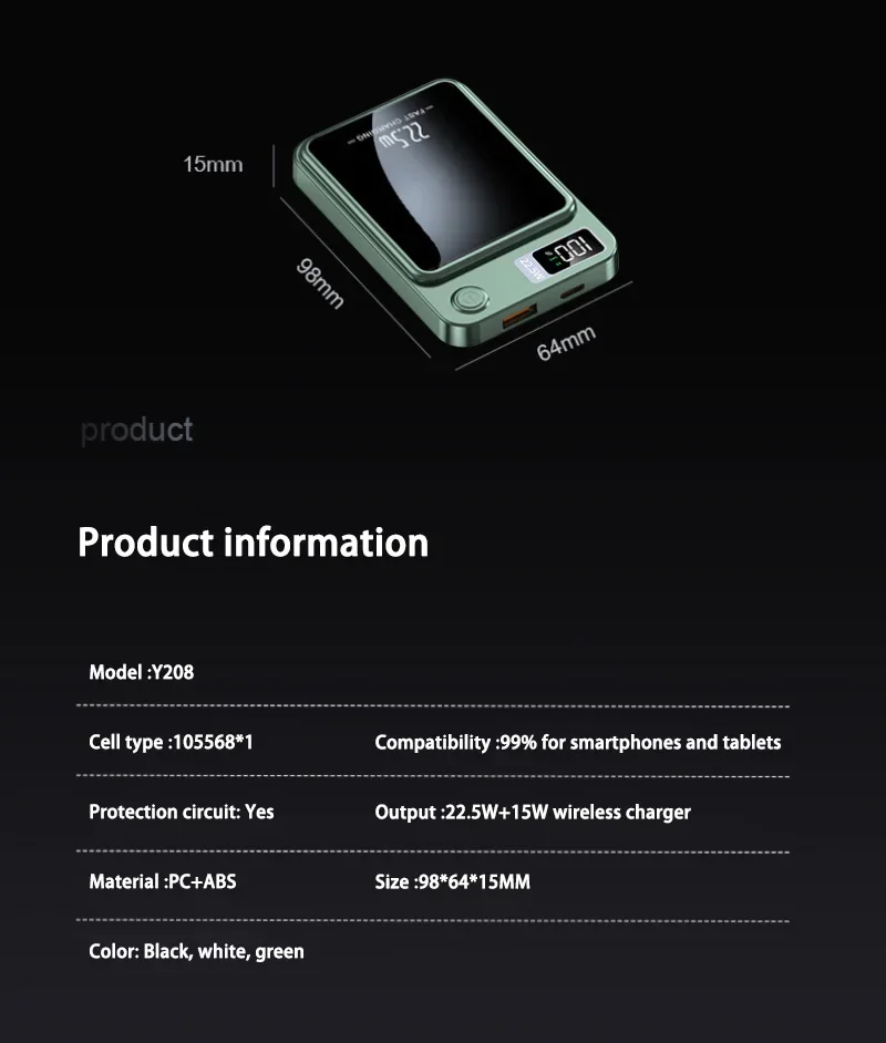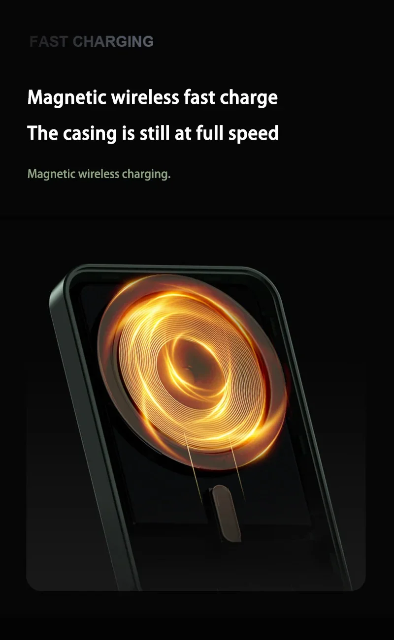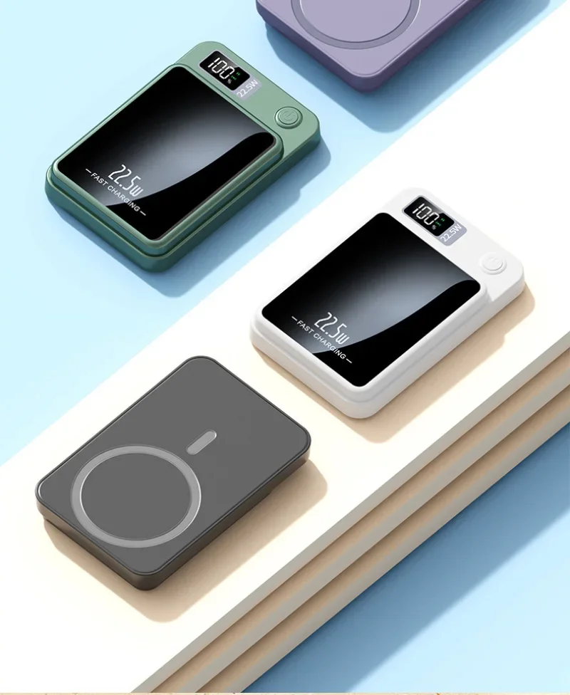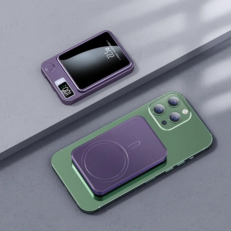 Power Bank magnétique 30000mAh avec charge sans fil 15W : une batterie externe ultra-puissante pensée pour le quotidien. Grâce à son aimant intégré (type MagSafe), elle se fixe directement au smartphone pour une charge stable et rapide, même en déplacement. Format compact, écran digital, câbles intégrés : tout est optimisé pour une utilisation mobile.