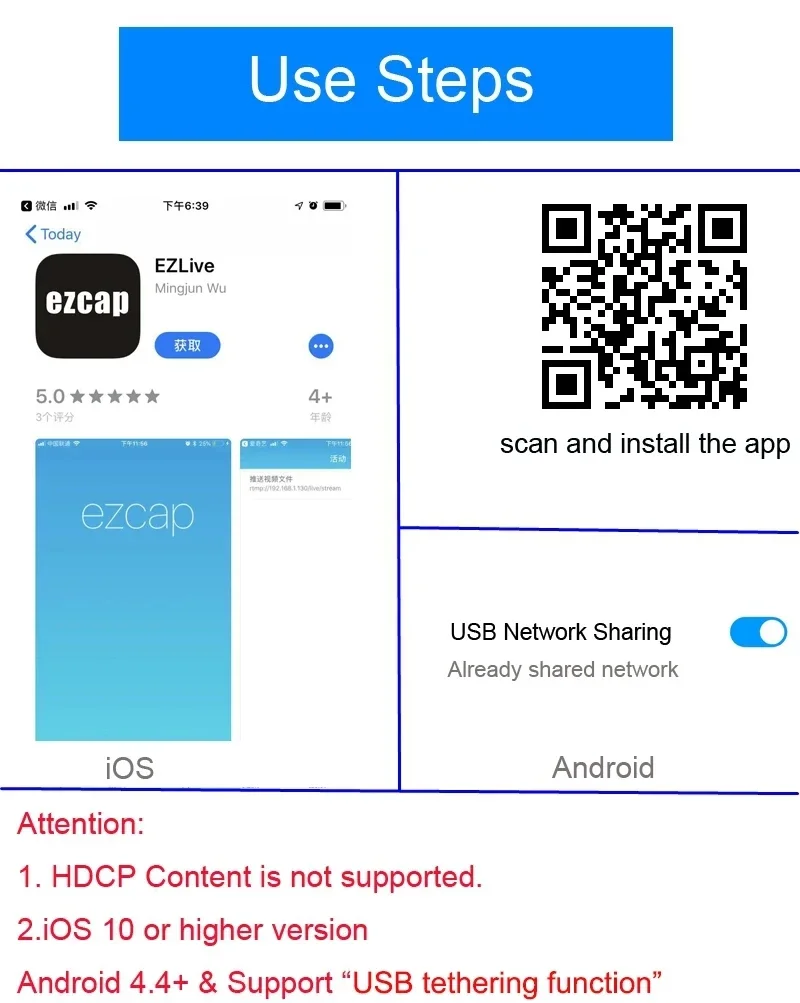 iOS: iOS10 or above. Android: Android 6.0 or above, should support USB tethering function.