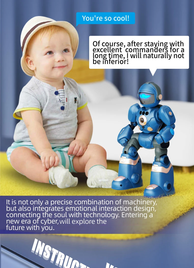Le Robot Intelligent est conçu pour être sécurisé et adapté à tous les âges, ce qui en fait un compagnon idéal, que ce soit à la maison ou à l'extérieur. Il est robuste et facile à manipuler, si bien que les enfants peuvent l'emporter partout.Ils peuvent partager des moments inoubliables en jouant ensemble, ce qui favorise le développement social, émotionnel et cognitif.De plus, son design attrayant et coloré capte certainement l'attention des jeunes, donc ils seront ravis de passer des heures à jouer avec lui.