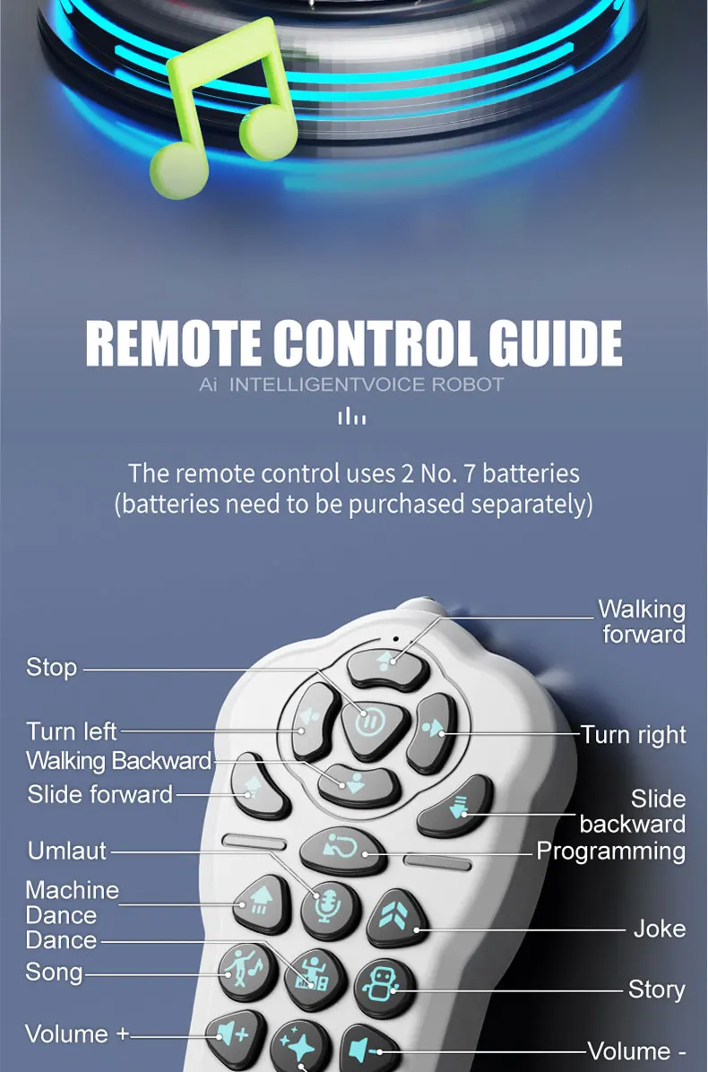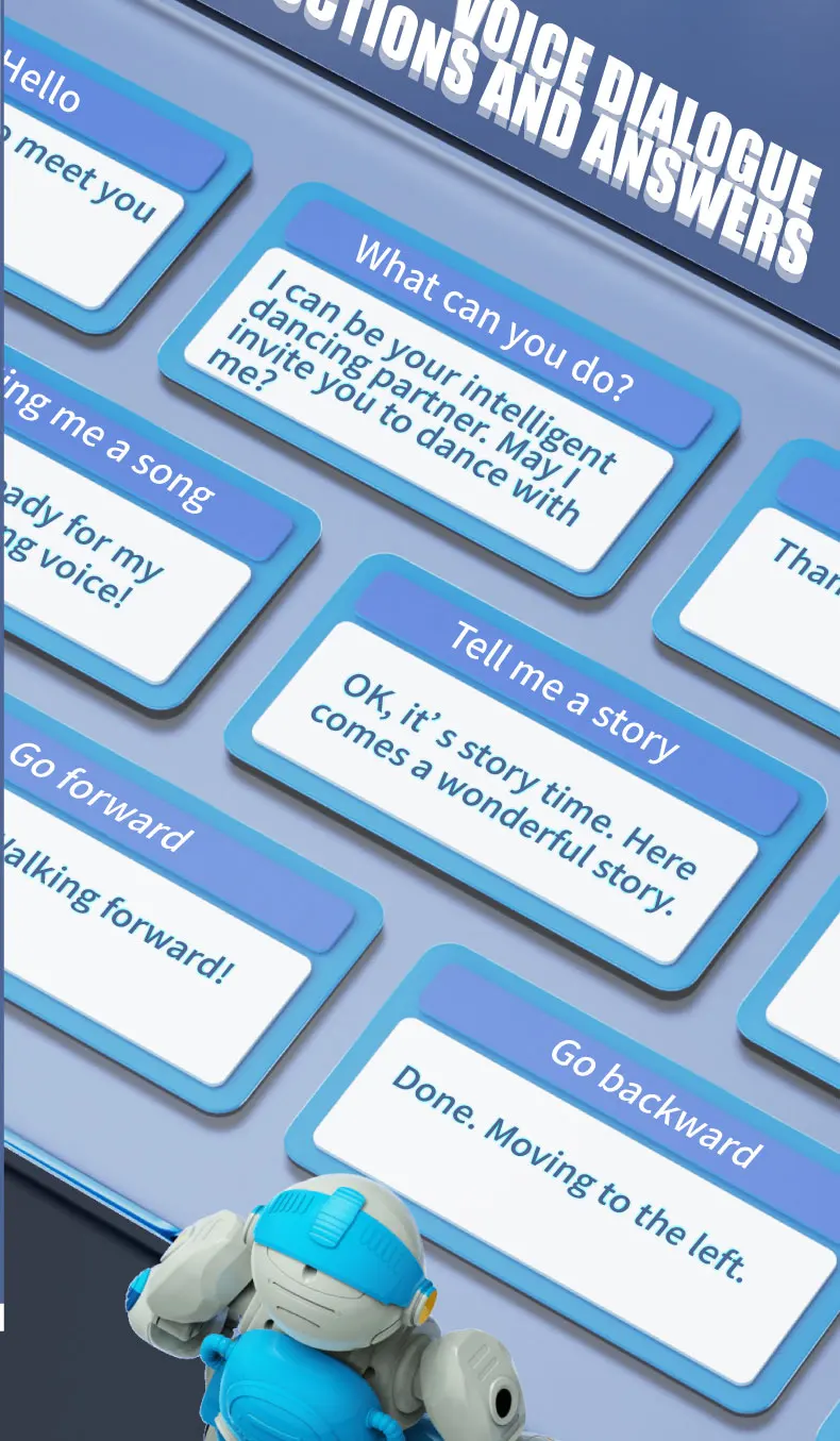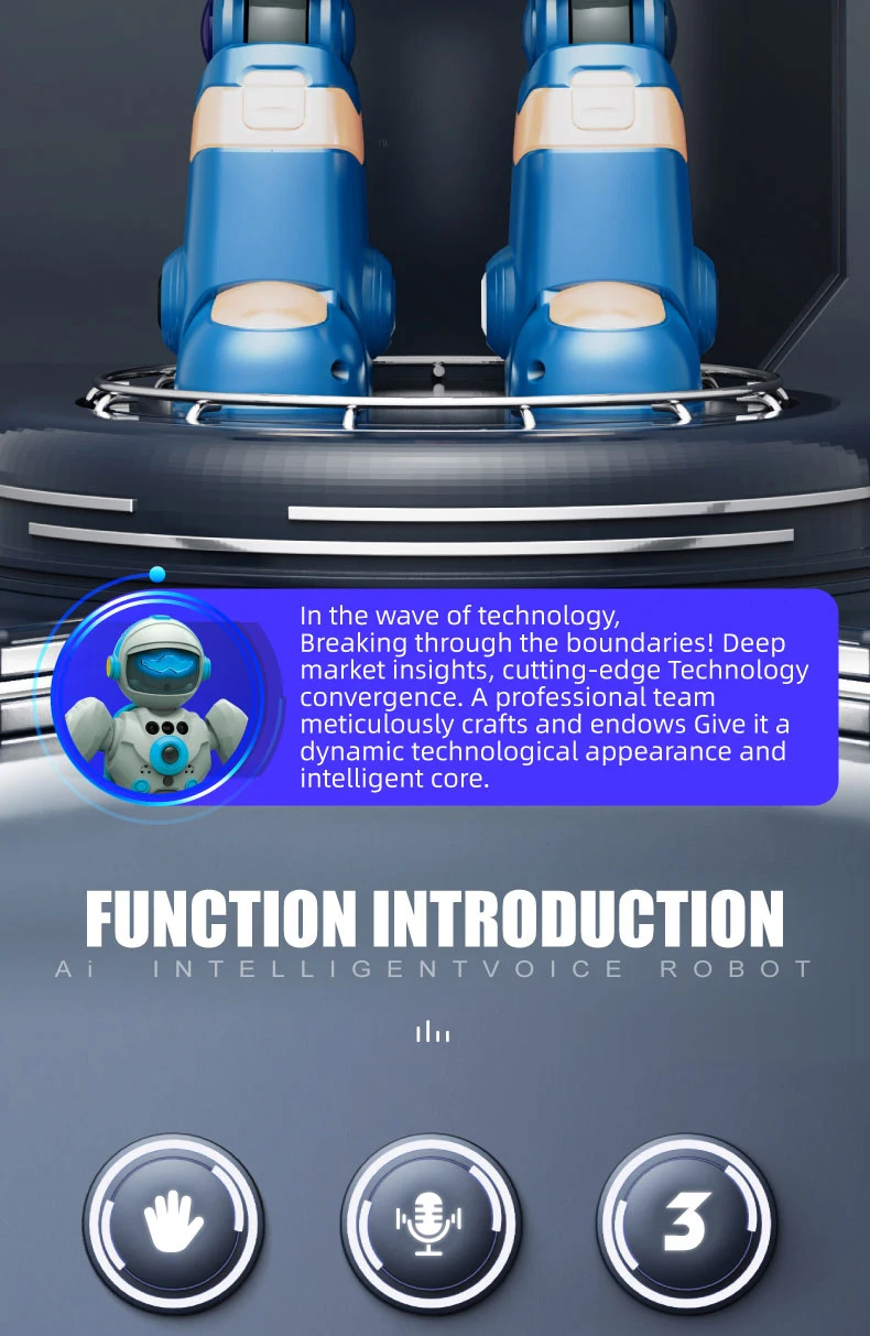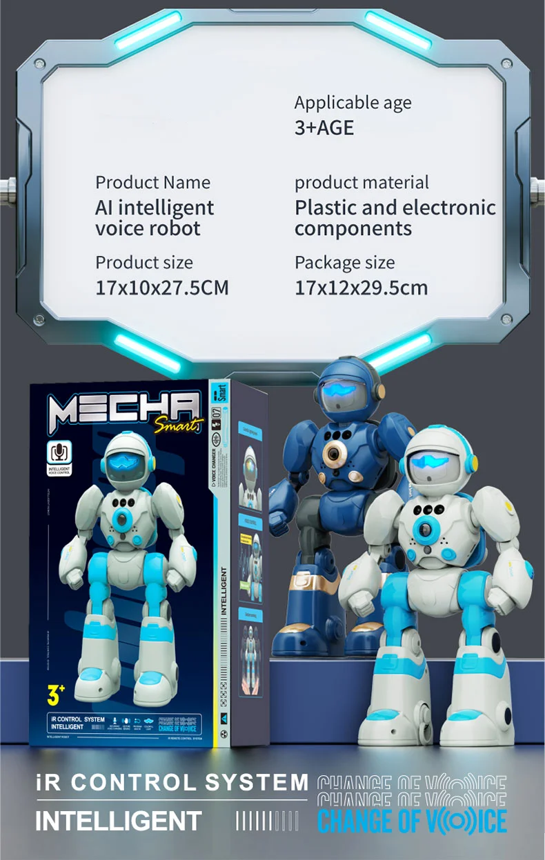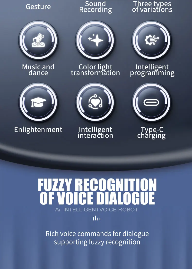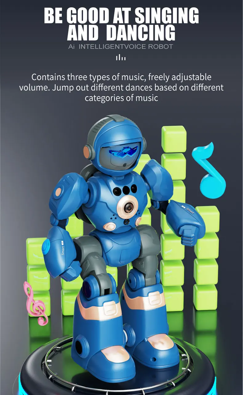 Le Robot Intelligent Interactif combine le plaisir du jeu avec l'apprentissage. Grâce à sa fonction de commande vocale, il permet aux enfants d'explorer leurs capacités d'interaction et de communication.Parce qu'il répond aux instructions vocales, les jeunes utilisateurs peuvent l'inciter à réaliser diverses actions, comme danser, chanter ou jouer. Ceci en fait un outil idéal pour stimuler l'imagination et la créativité.