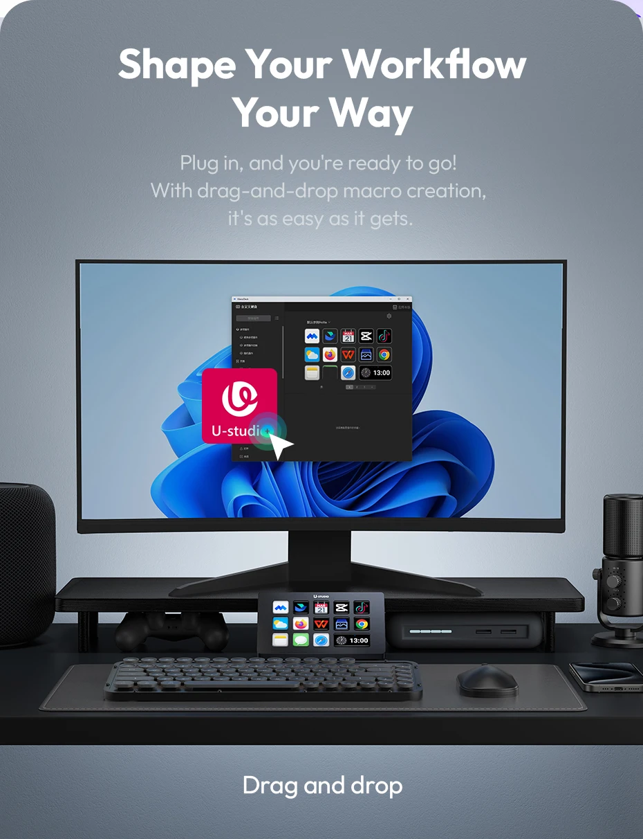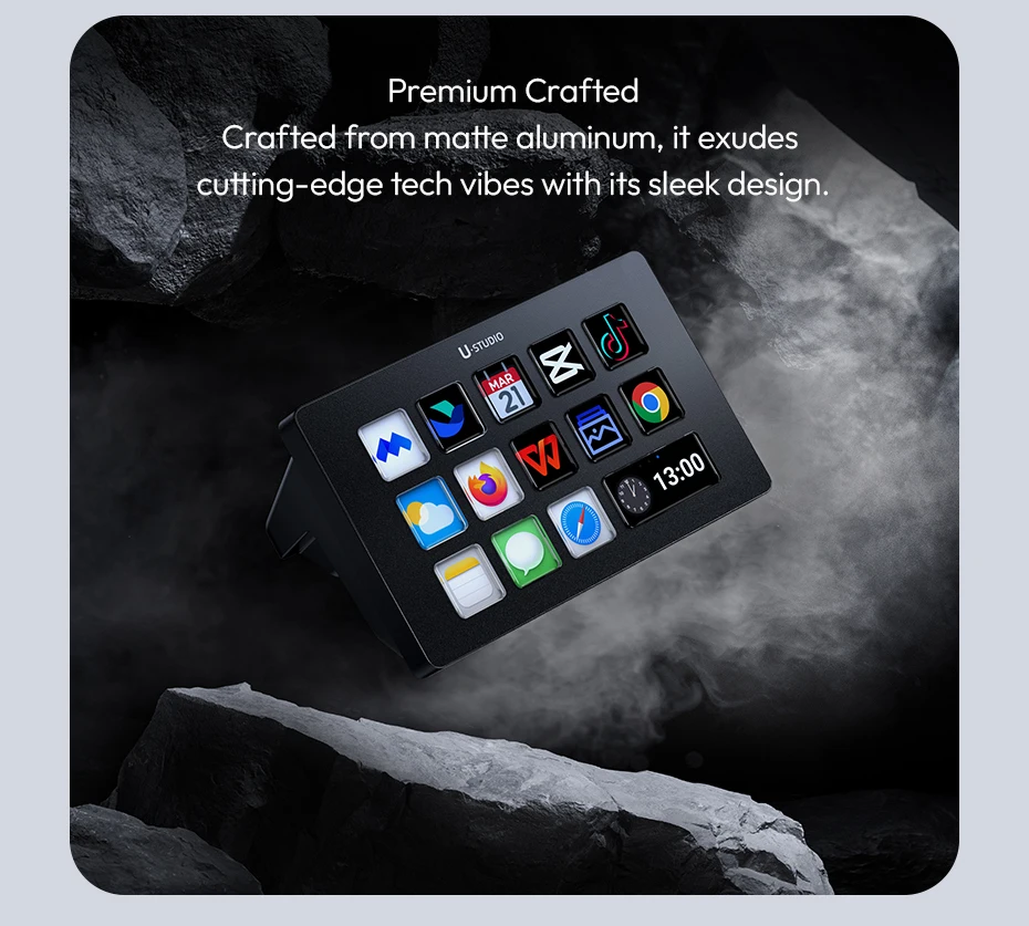 Optimisez votre workflow de streaming, édition vidéo et production de contenu. Le Ulanzi D200 offre 13 touches LCD entièrement programmables pour exécuter instantanément vos actions : lancer OBS, changer de scène, envoyer un message chat, ouvrir un logiciel, lancer une macro, etc.